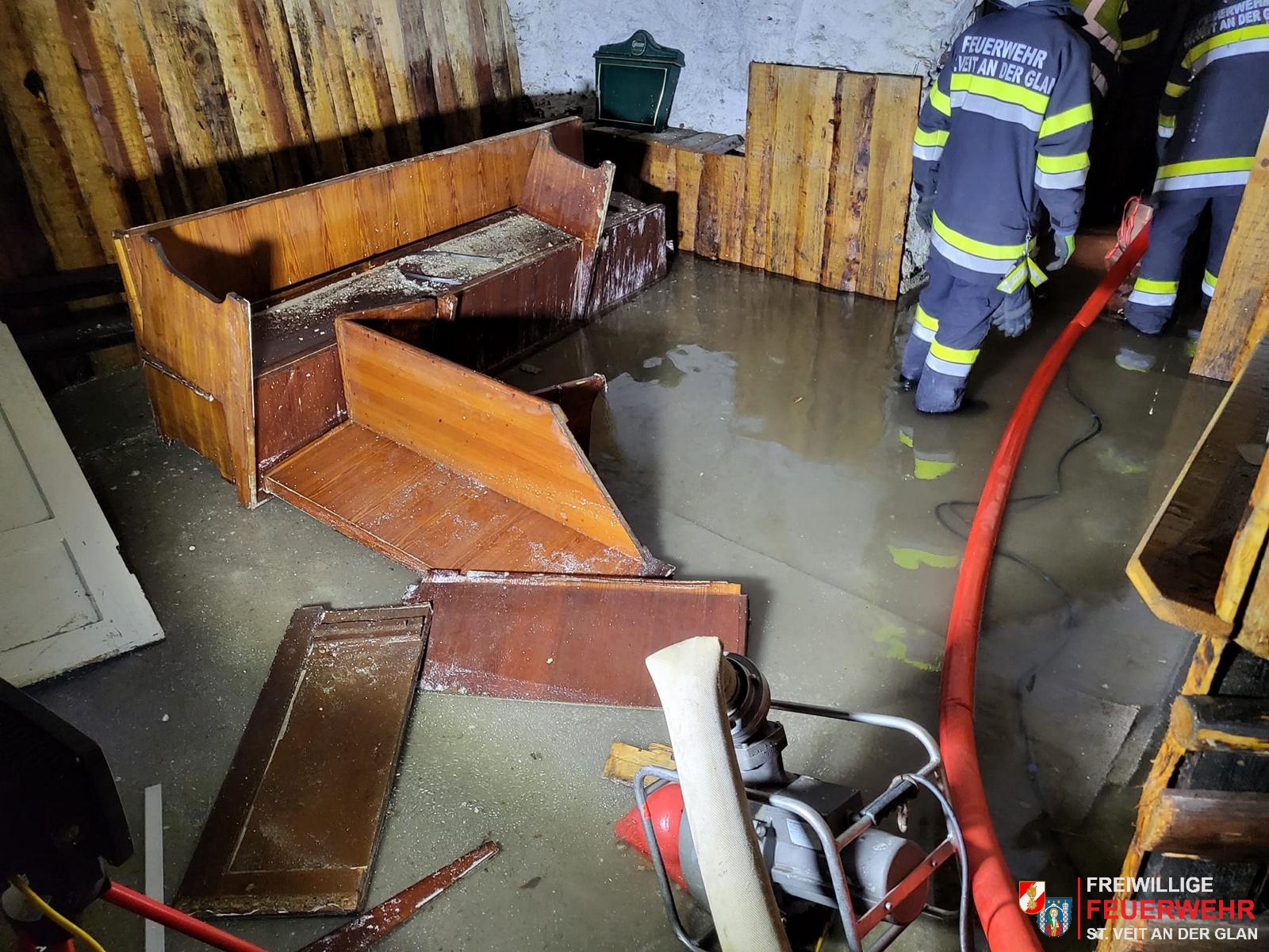 Um 13:28 Uhr wurde die Feuerwehr St. Veit an der Glan zu einem Wasserrohrbruch in die Prinzhoferstraße/Klagenfurter Straße alarmiert. Ein Keller stand dort ca. eineinhalb Meter unter Wasser.